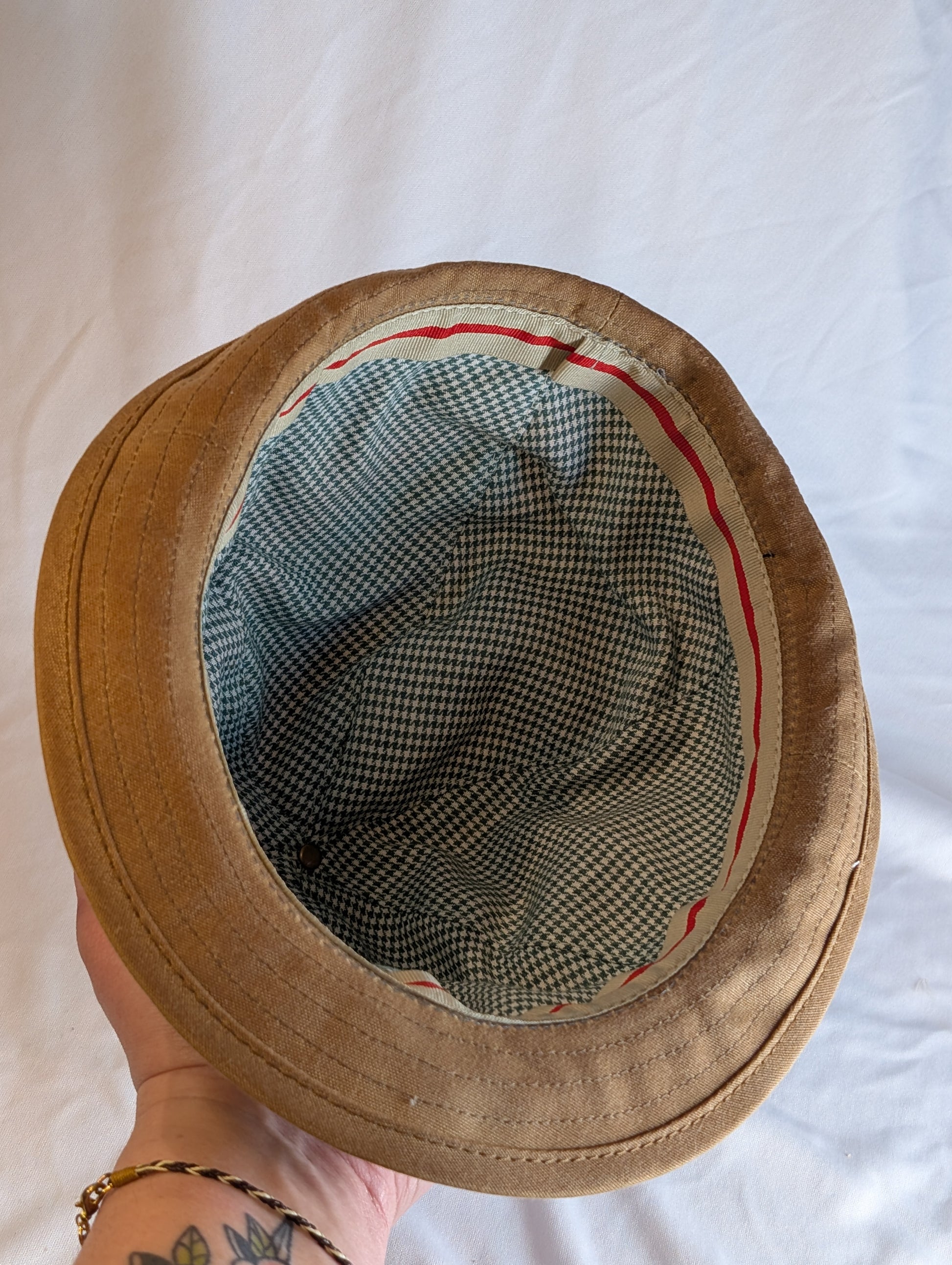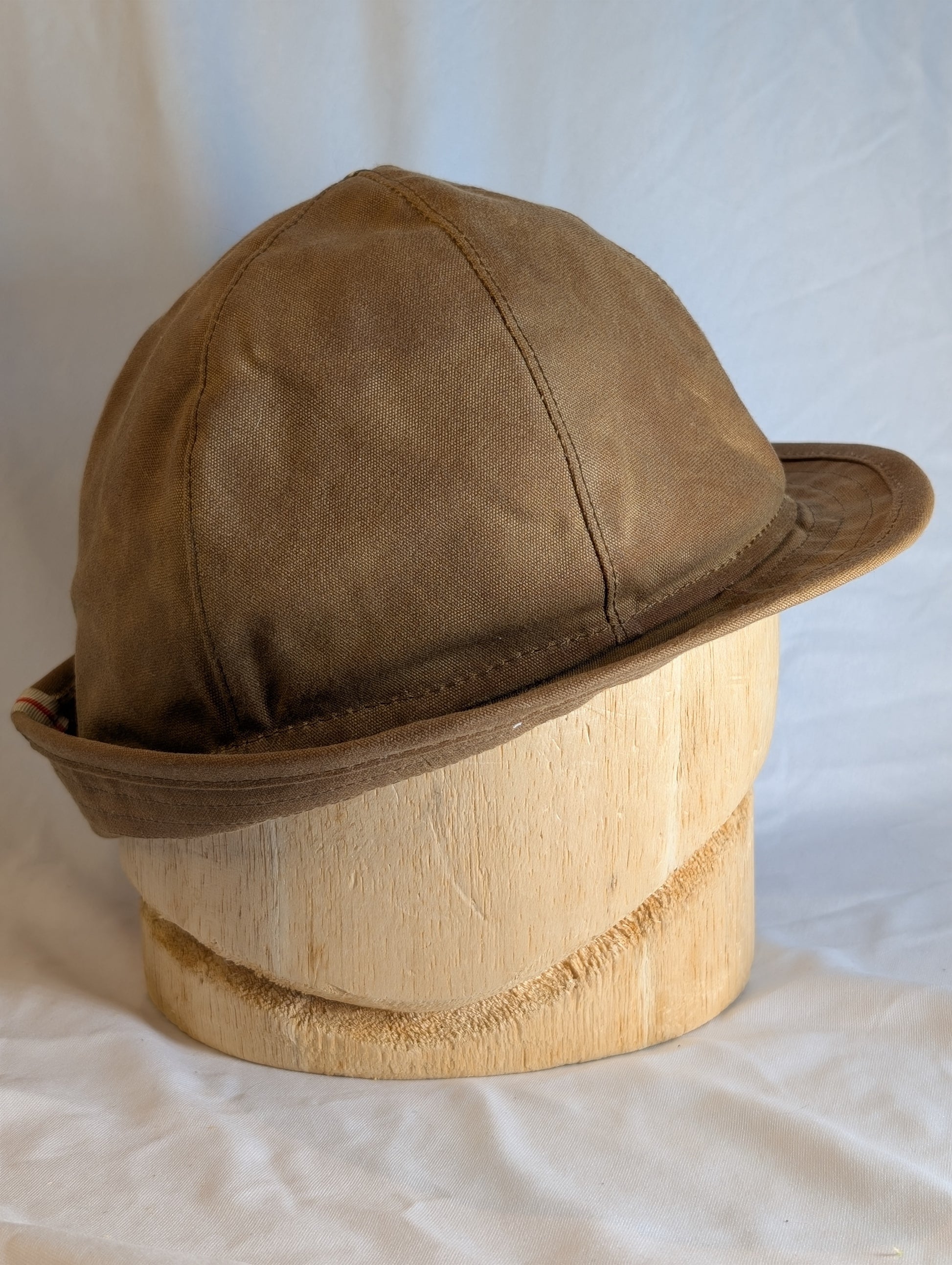 Meet The Angler, a hat inspired by a 1920's woman's fishing hat featured in the Sporting Fashion: Outdoor Girls from 1800-1960 exhibit, which we got to see at the Frick Museum in 2021 and it blew our minds all the way out the door. I had to make this hat just to get my brain back together. The crown of the hat has a bit more shaping than the 1920's original, and the back brim can be worn flipped up or down. It's fully lined with a vintage cotton print. The body of sturdy waxed canvas is water resistant and will shape to your head over time, making a piece truly unique to you. Wear in good health. ~Lauren